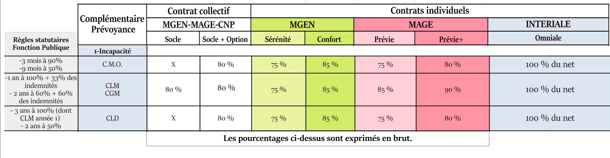 - Le premier avantage d’un contrat de prévoyance est le maintien de ces revenus en cas de congé prolongé faisant passer à 50% en statutaire.